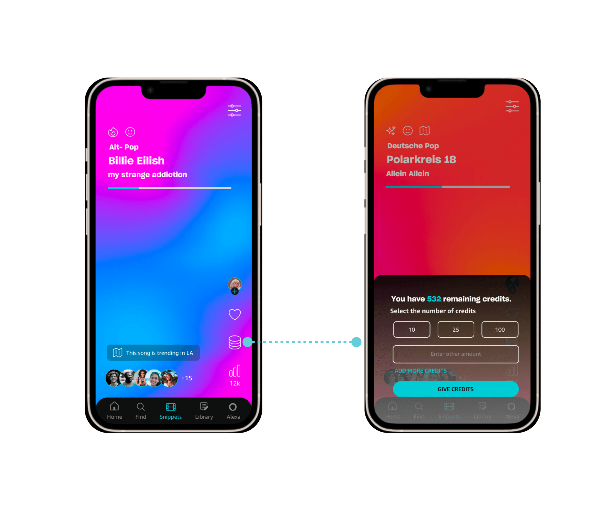 I worked with a small cohort to create two new features that could be integrated seamlessly into the existing Amazon Music App, which would grant new opportunities for Amazon Music listeners to discover underground artists, and provide the chance to give back to those artists in a new and exciting way.