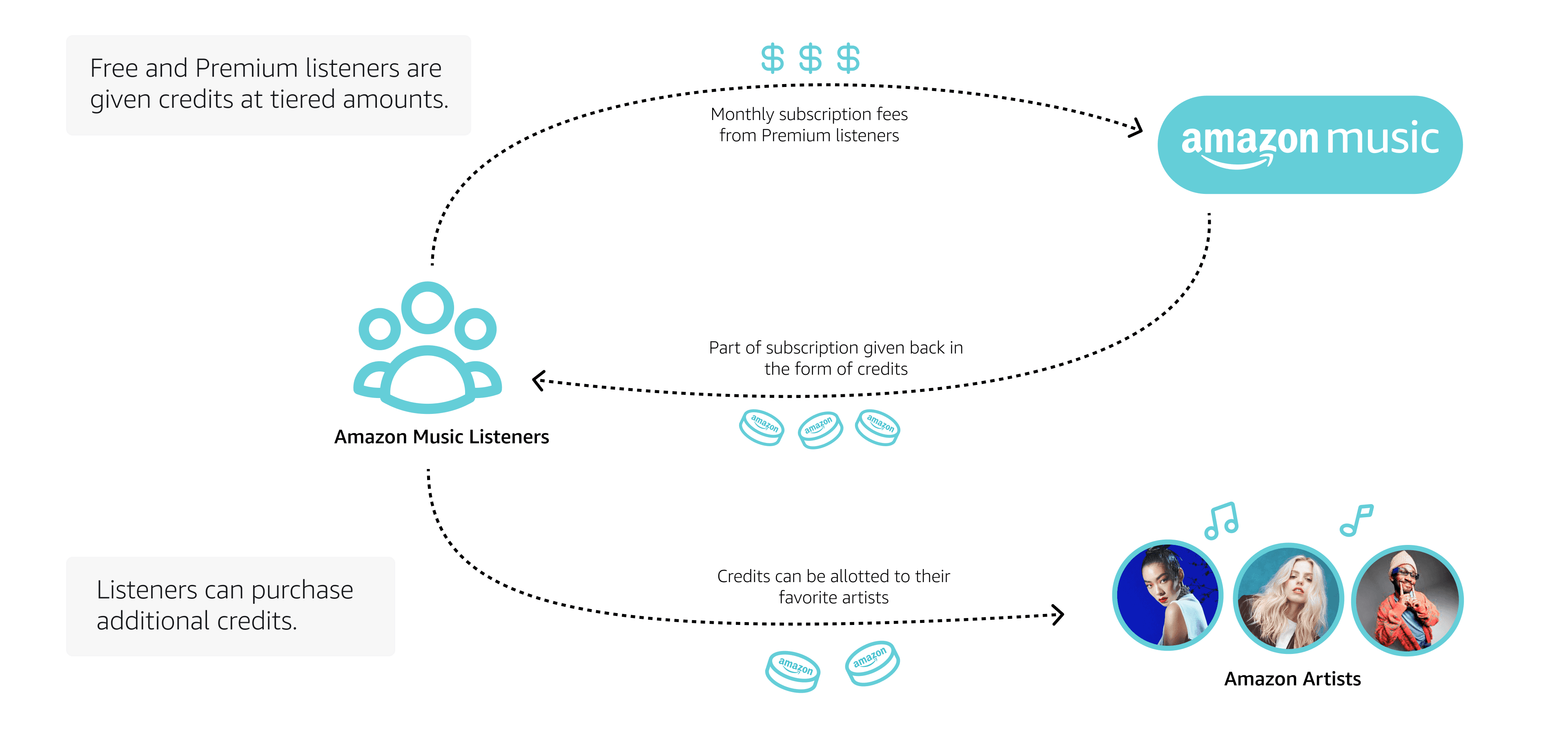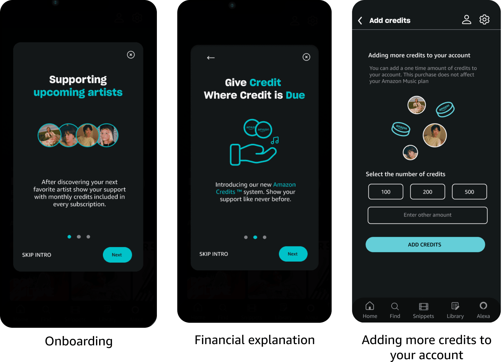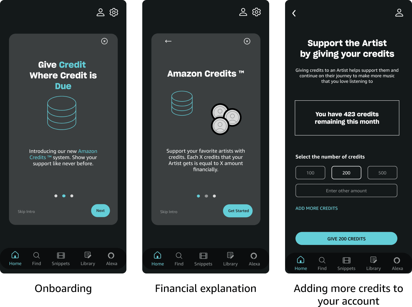 The second flow focused on the user giving Amazon Credits to an artist they wanted to support.